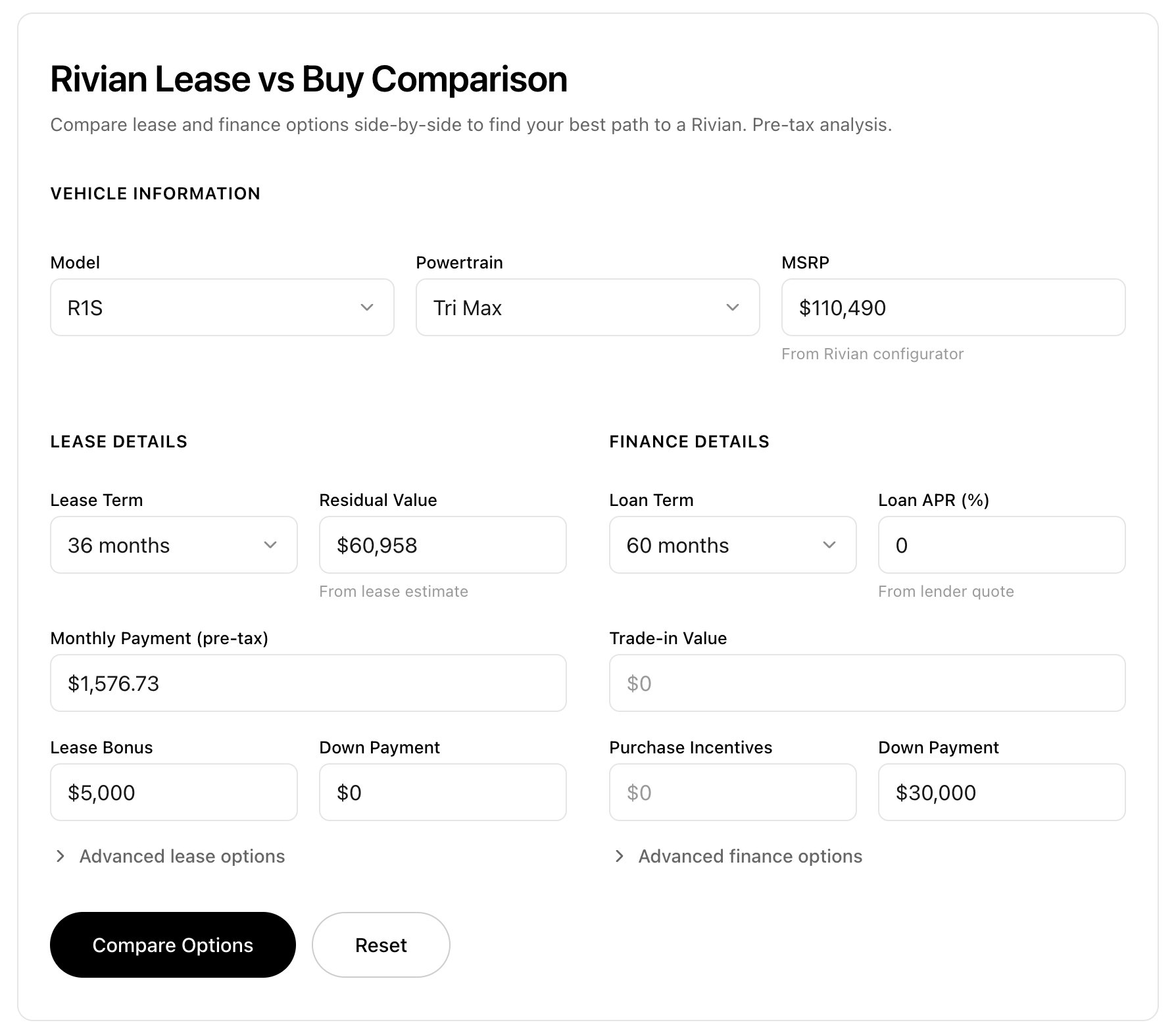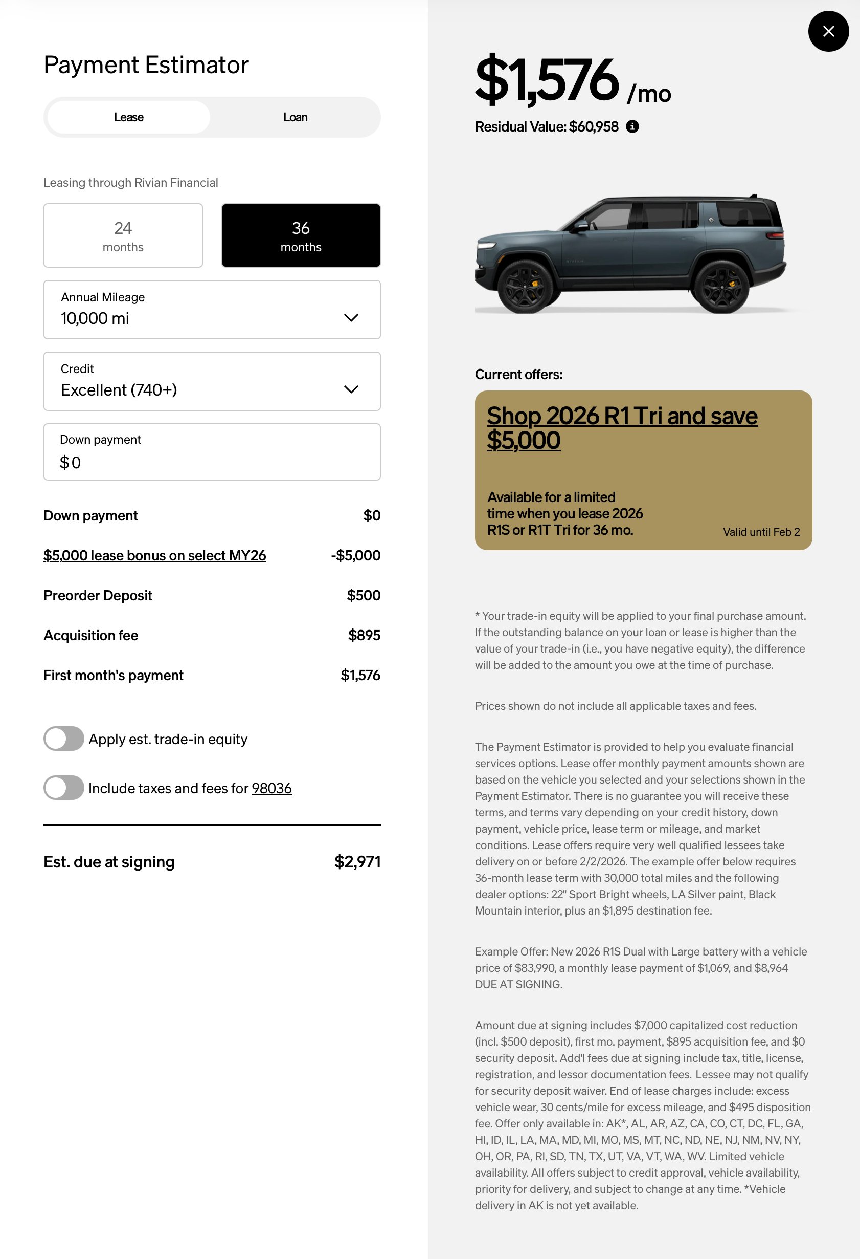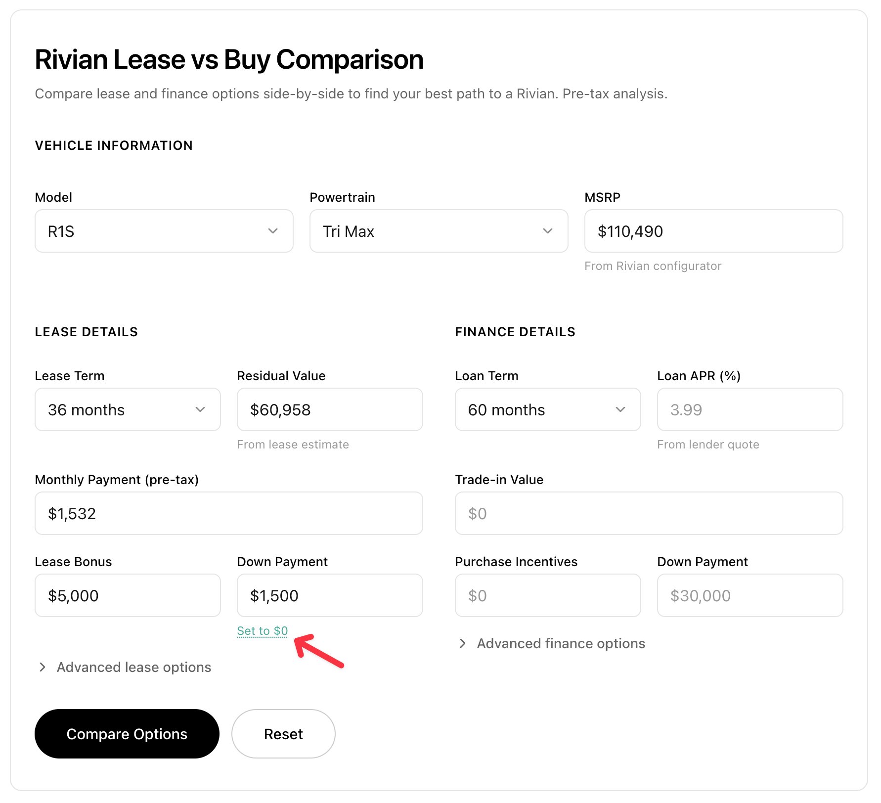 However, this was with the defaults that Rivian uses, and there was an active Lease Bonus applied to their base math.