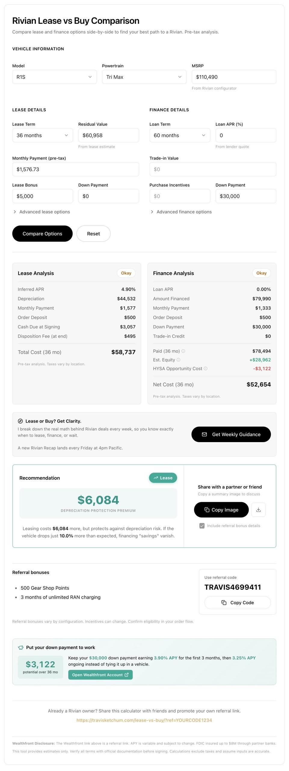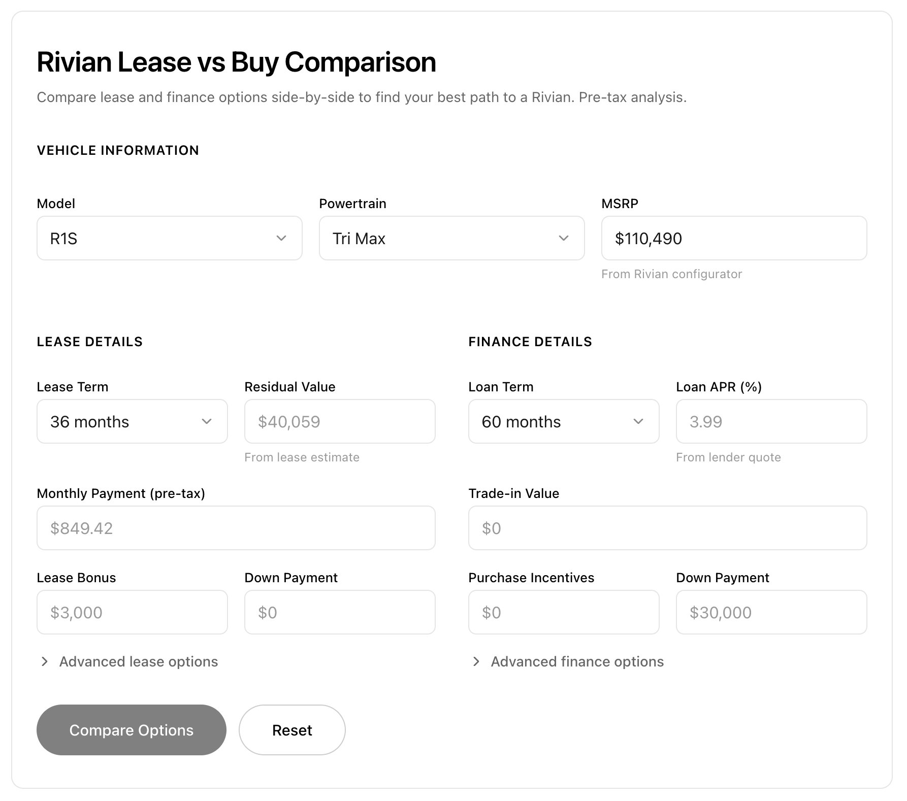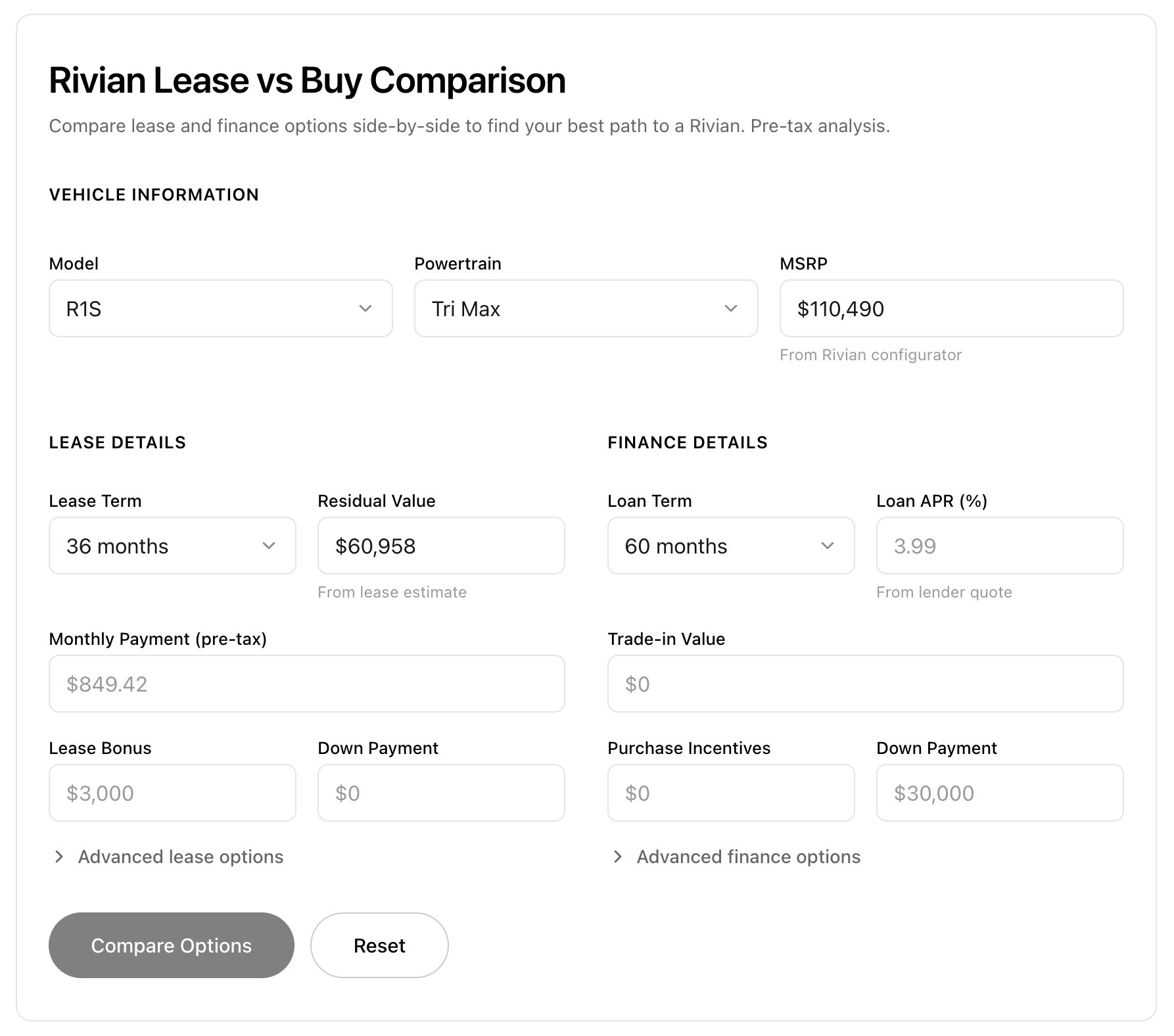 However, this was with the defaults that Rivian uses, and there was an active Lease Bonus applied to their base math.